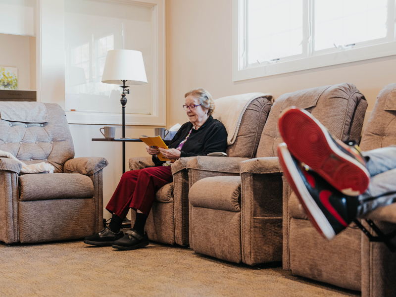 A comfortable setting is provided where participants can read, relax, or nap whenever they desire.