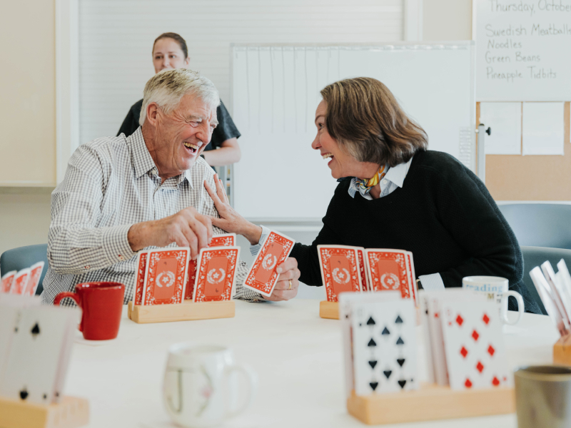 Enjoying the company of others is one of the main benefits for participants, who experience a renewal of self-esteem and purpose and decreased isolation while interacting with friends. Group activities and games are organized throughout the day to encourage engagement and conversation with others.